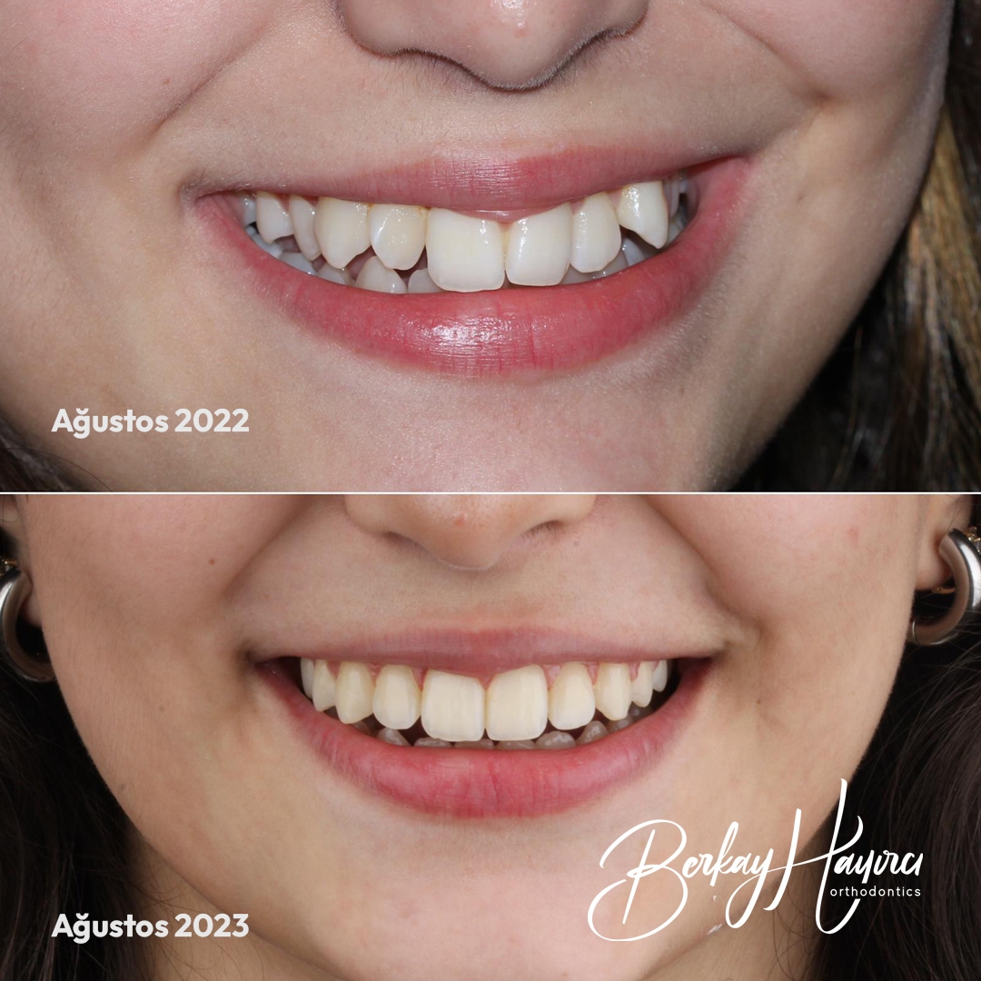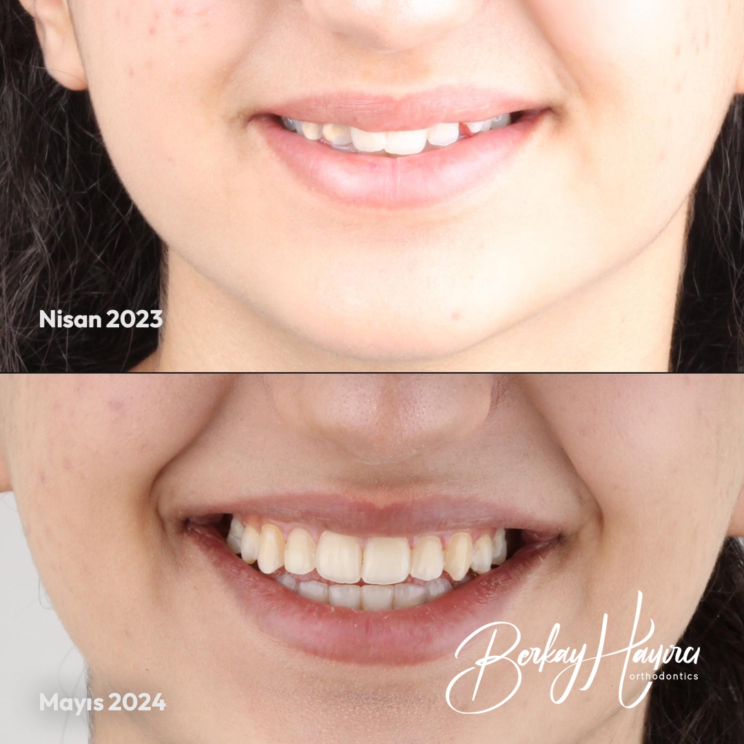 Dişler Arası Boşlukların Kapatılması ile Daha Hizalı ve Estetik Amaçlı TedaviHastamıza uygulanan dişler arası boşluk tedavisi ile dişlerdeki çapraşıklıklar estetik bir şekilde düzeltilmiş, daha hizalı ve dengeli bir gülüş elde edilmiştir.