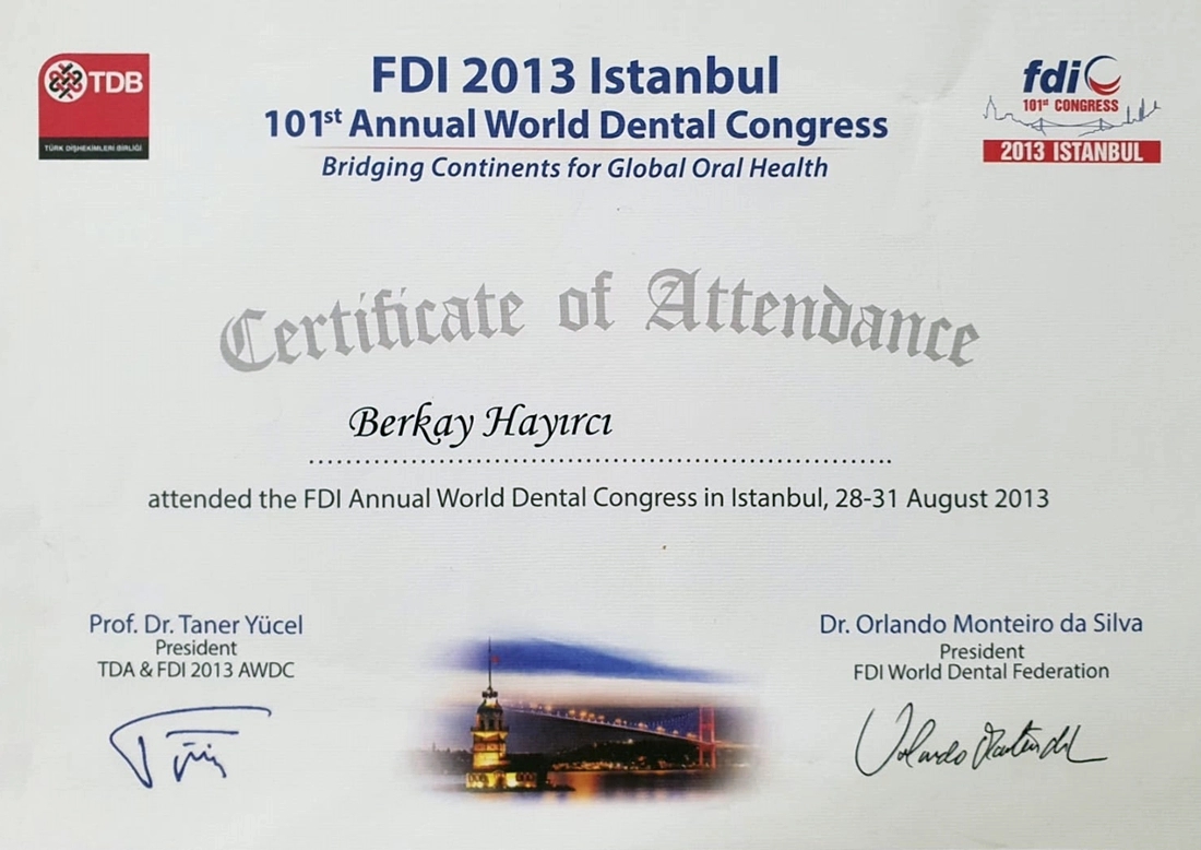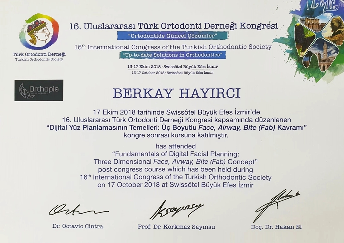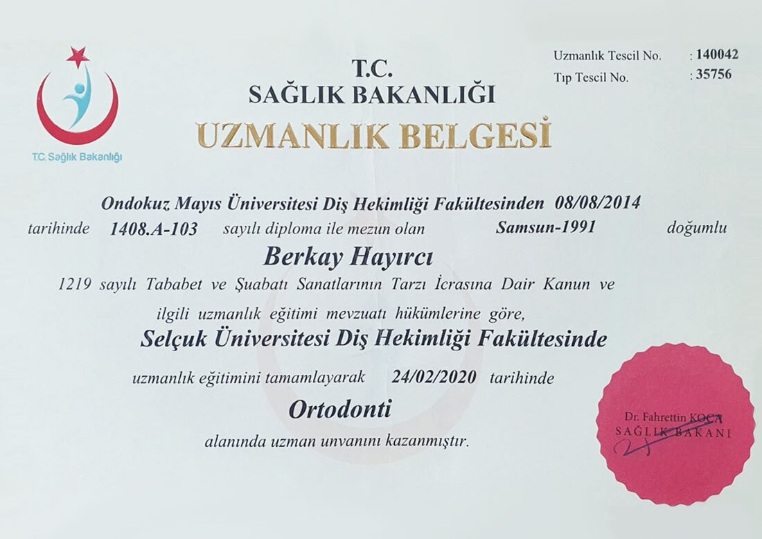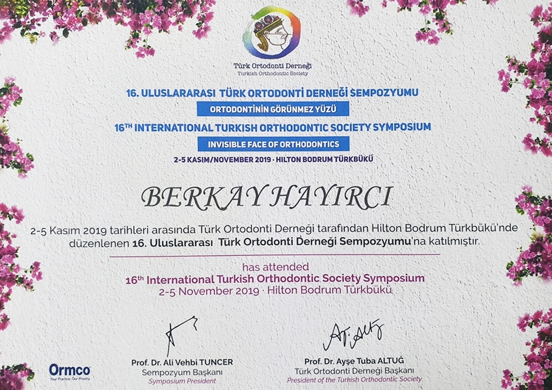 Uzm. Dt. Berkay Hayırcı Türk Ortodonti Derneği, Türk Aligner Derneği, Europian Orthodontic Society ve Türk Diş Hekimleri Birliği üyesidir.